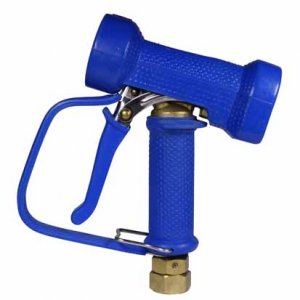 Messing lage druk sproeipistool met blauwe EPDM beschermhoes.